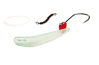 Размер приманки 7,5см, она оснащена монофильным поводком 1,2м диаметром 0,45мм, крючком 4/0 и пятисоставным вертлюгом.