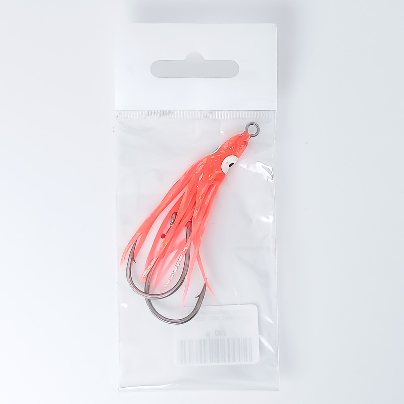 Оснащенный двойным ассист-хуком октопуc для ловли кеты. Используется как дополнительная приманка на кетовых блеснах или колебалках Тасманский дьявол.