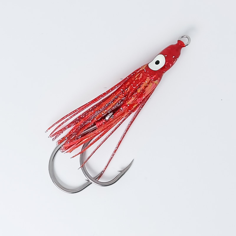 Оснащенный двойным ассист-хуком октопуc для ловли кеты. Используется как дополнительная приманка на кетовых блеснах или колебалках Тасманский дьявол.