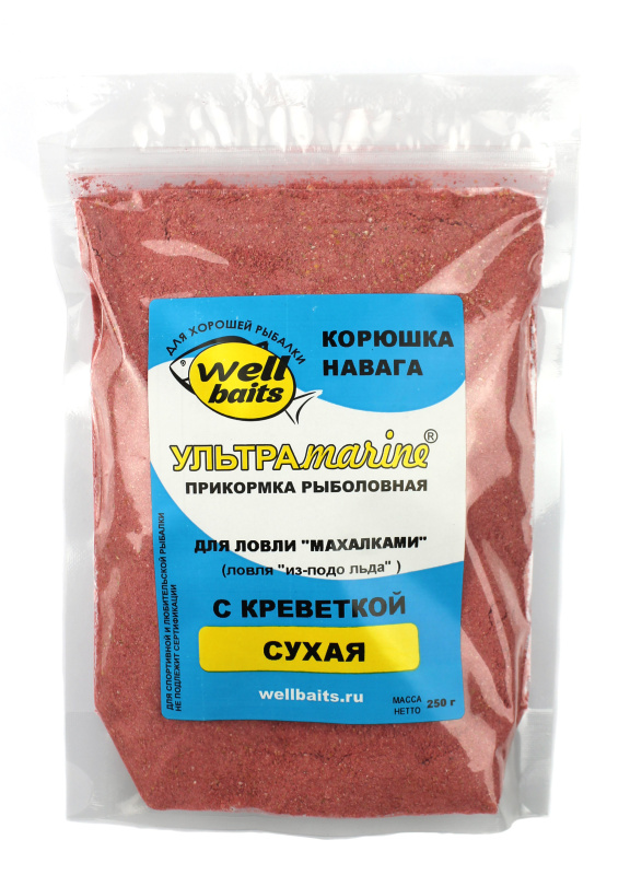 Прикормка УЛЬТРАМАРИН Корюшка (сухая) (с КРЕВЕТКОЙ) красная с мерной ложкой 250гр
